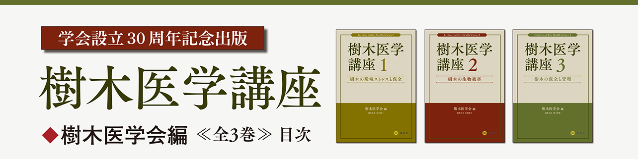 樹木医学会は2025年に学会設立30周年を迎えました。学会設立の30周年記念事業として、海青社より『樹木医学講座(全3巻)』を出版する運びとなりました。この3巻の書籍は、2014年に出版された『樹木医学の基礎講座』の続編にあたり、最先端の研究や現場の課題をテーマ別にまとめて紹介した『樹木医学研究』誌の連載記事の内容をアップデートしたものです。 樹木に関心のある市民や樹木医を目指す学生などの皆様に、幅広く読んでいただき、本書をきっかけに、樹木保全や樹木医の活動に関心を持っていただけたら幸いです。